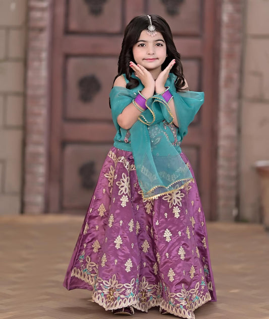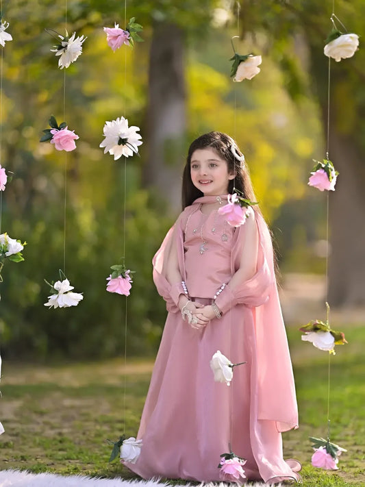 Royal Rani Pink Patchwork Lehenga Choli Set for Girls