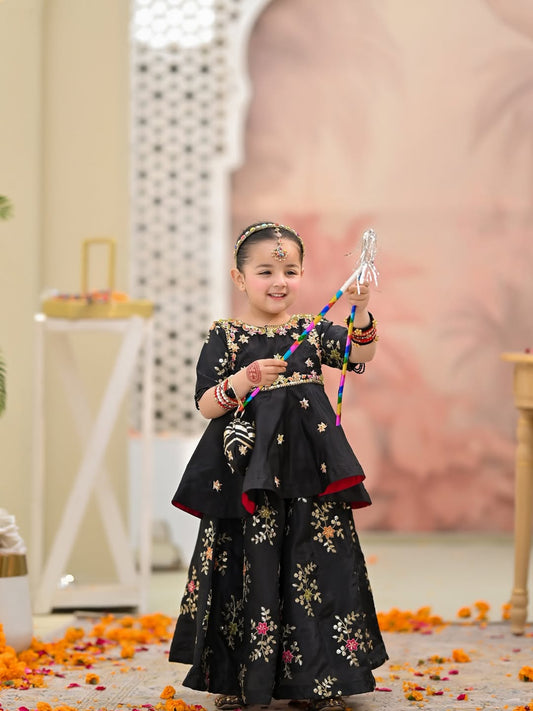 Royal Mustard Patchwork Lehenga Choli Set for Girls