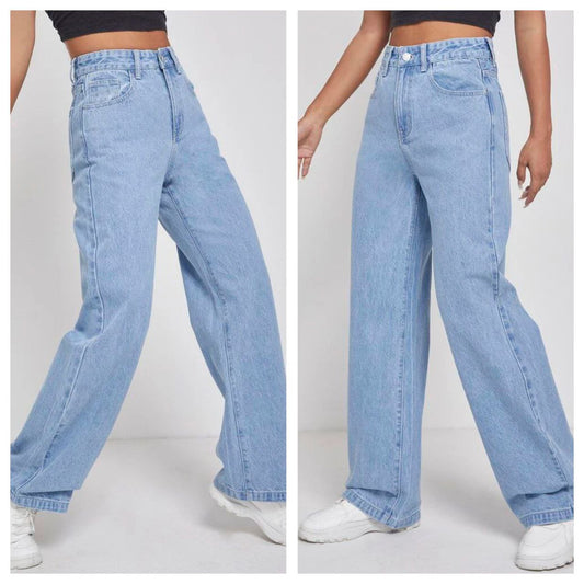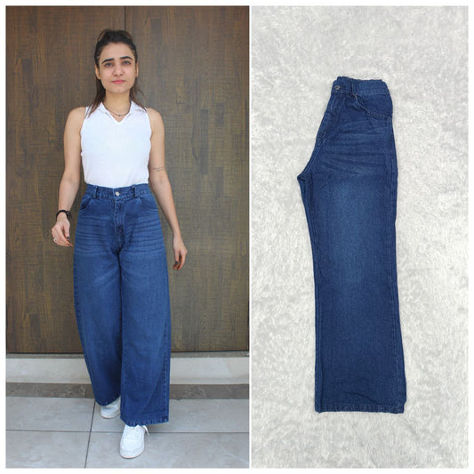 Women Comfort Wide Leg Light Fade Stretchable Jeans