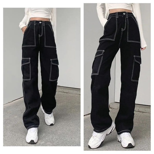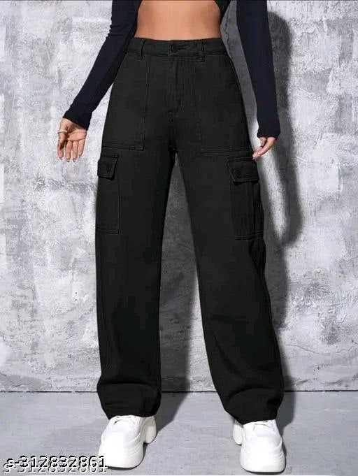 Womens Six Pocket Black Cargo Jeans