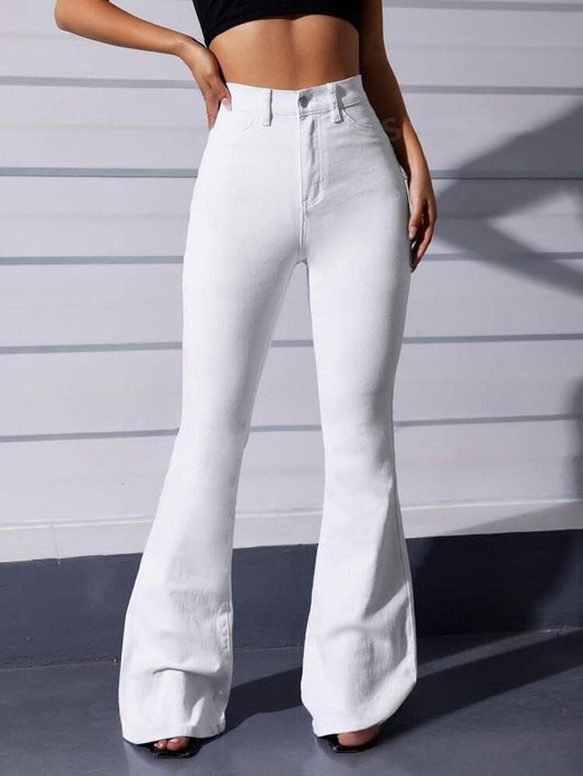 Women Deep White High-Rise Bootcut Fit Stretchable Jeans