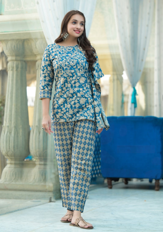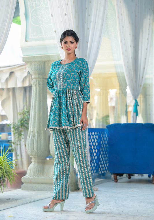 Delicate Lace Cotton Duo Kaftan & Pant Set