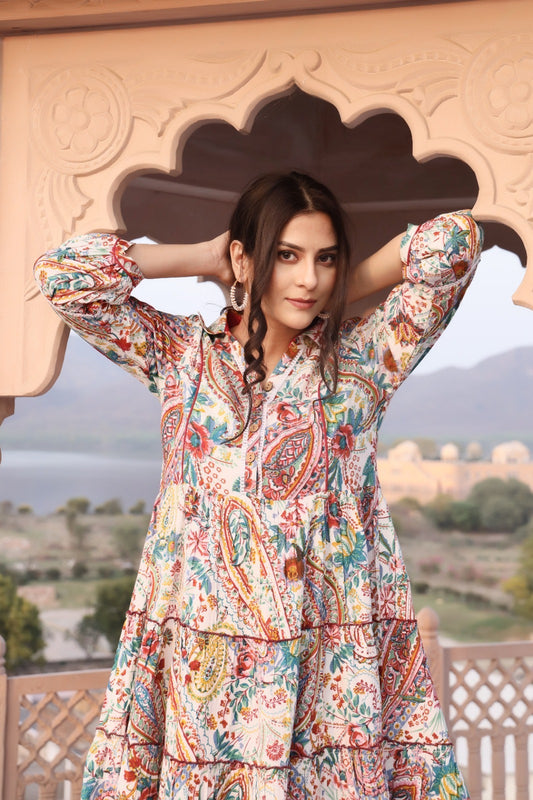 YAMIKA ORGANJA SILK PRINT ANARKALI DRESS