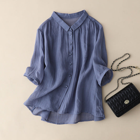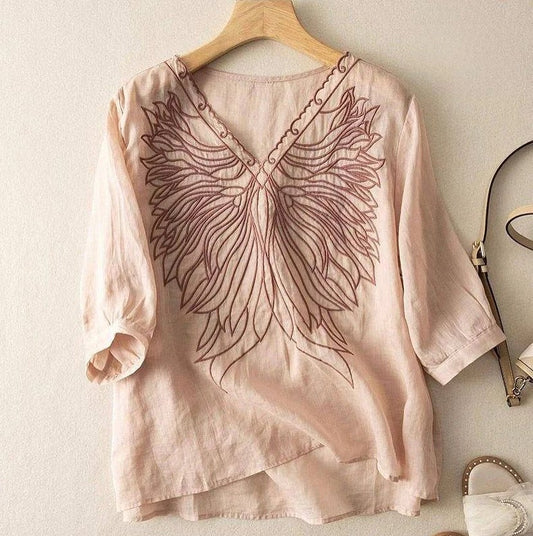 Women's Cotton Linen V Neck Retro Embroidered comfort Casual Top